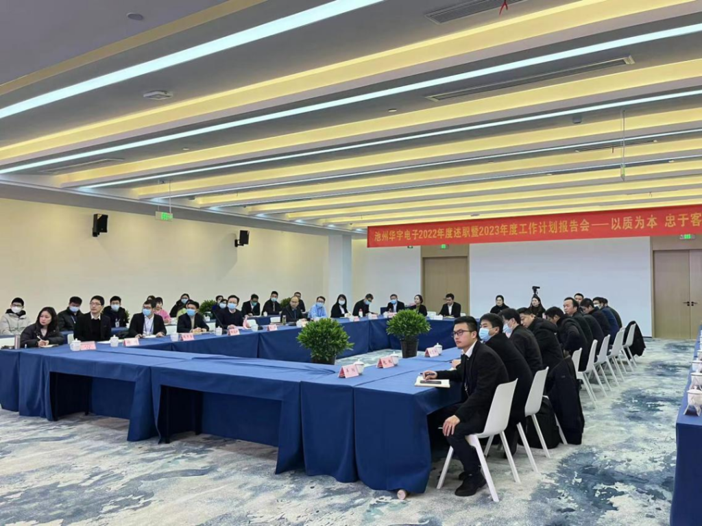 日月其邁,時(shí)盛歲新。2月4日,池州華宇電子2022年度述職報(bào)告暨2023年度工作計(jì)劃安排會(huì)圓滿召開。此次大會(huì)以“以質(zhì)為本 忠于客戶”為主題,全面復(fù)盤總結(jié)了2022年度各項(xiàng)工作,布局2023年發(fā)展規(guī)劃,并簽訂經(jīng)營目標(biāo)指標(biāo)責(zé)任書,為公司進(jìn)一步實(shí)現(xiàn)高質(zhì)量發(fā)展統(tǒng)一了思想。