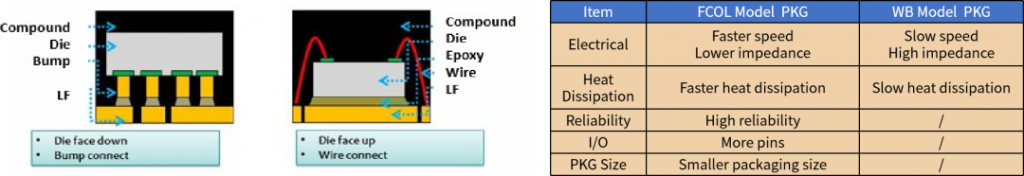 Flip Chip是一種倒裝工藝,利用凸點技術在晶圓內部重新排布線路層(RDL),然后電鍍上bump。bump的結構一般為Cu+solder或Cu+Ni+solder。通過倒裝裝片機將芯片翻轉正面朝下,無需引線健合,通過回流焊爐熱熔芯片上的錫凸點(Bump)與引線框架或者基板進行焊接,使得芯片與載體焊接起來,直接替代了傳統的上芯與壓焊的工藝。電信號通過載體實現與封裝外殼互聯的技術無需引線鍵合。形成更短的電路,降低電阻;縮小了封裝尺寸,相比傳統引線鍵合產品,提高了電性能,熱性能。有更高的可靠性保障。